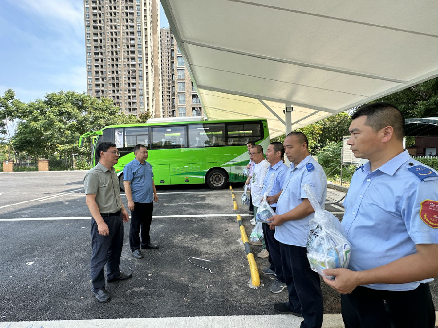 8月7日上午,北碚區(qū)道路運輸事務(wù)中心主任張選澤一行到水土思源公租房首末公交站慰問公交一線工作人員。東城公交龍盛經(jīng)營部黨支部書記、經(jīng)理謝再秋陪同。