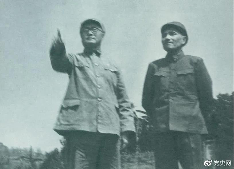 圖為劉伯承司令員和鄧小平政委指揮渡江準備工作。