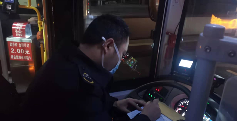 (何昌建師傅正在進行行車前的安全檢查和記錄)